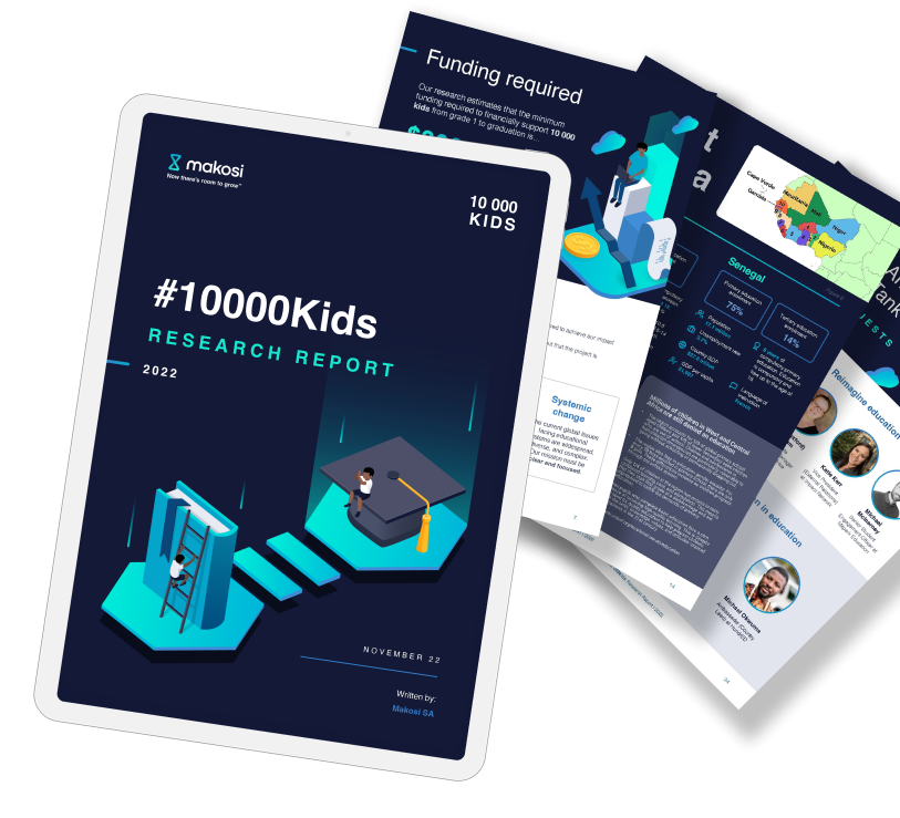 At Makosi, we imagine a world where everyone has the opportunity to pursue a high quality education. This is why we set out to put 10,000 kids through school in the next three years.